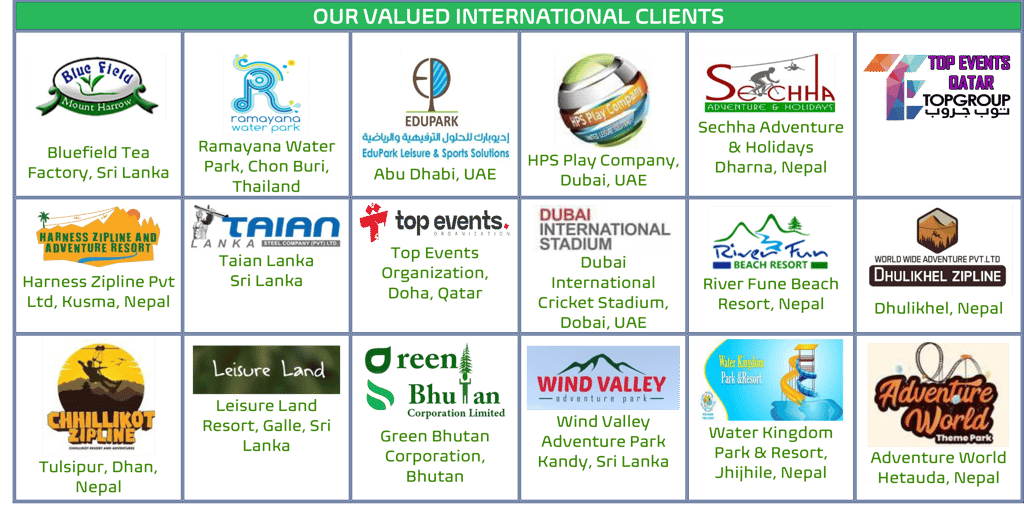 250+ Zip Line installations in India, Qatar, Dunai, Nepal, Sri Lanka, Bangladesh, Thailand