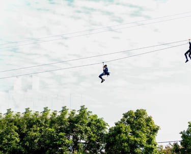 The Experience : Modern adventure zip lines are designed for fun, thrill, and safety. Riders are secured in a harness or seat before launching from a platform, gliding over stunning landscapes at high speed, and safely slowing down as the cable naturally levels out at the end. The ride typically concludes at a landing platform or ground point, managed by trained staff.